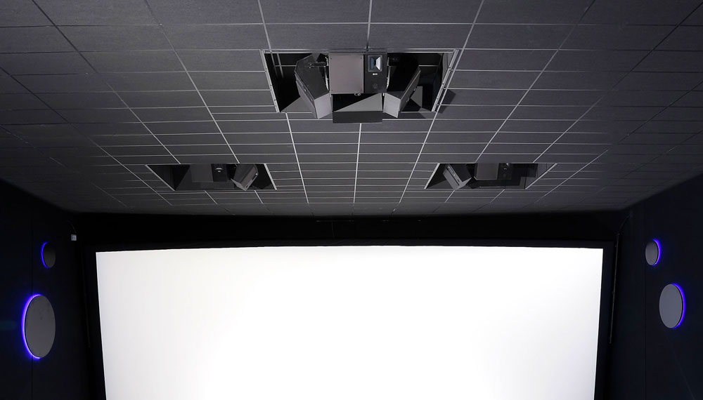 Nos panneaux de plafond en laine de roche acoustique Rockfon® Cinema Black™ améliorent l'expérience visuelle et acoustique dans les endroits bruyants, dans les auditoriums ou les restaurants.